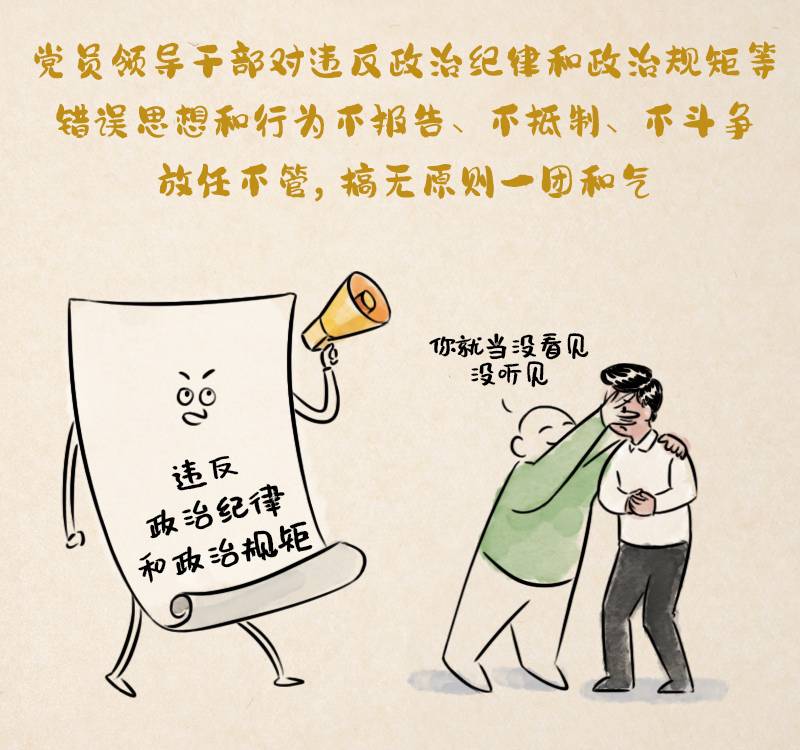 第七十五條 黨員領(lǐng)導(dǎo)干部對違反政治紀(jì)律和政治規(guī)矩等錯誤思想和行為不報(bào)告、不抵制、不斗爭,放任不管,搞無原則一團(tuán)和氣,造成不良影響的,給予警告或者嚴(yán)重警告處分;情節(jié)嚴(yán)重的,給予撤銷黨內(nèi)職務(wù)或者留黨察看處分。
