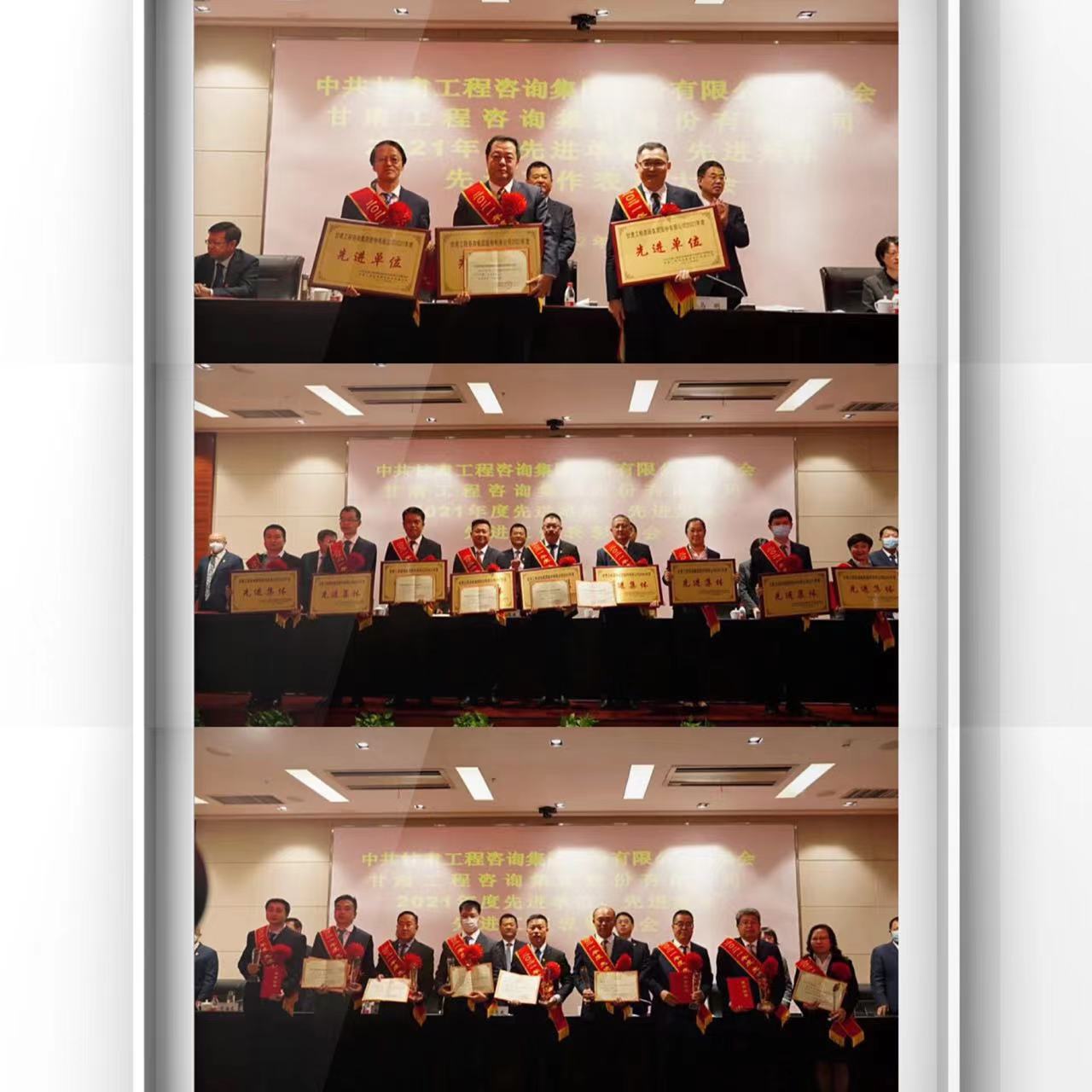 4月29日,甘肅工程咨詢集團召開2021年度先進單位、先進集體、先進工作者表彰大會。會議由集團公司黨委副書記王春燕主持,集團公司黨委會、董事會、監事會、經理層成員,各子公司黨委書記、董事長(執行董事)、總經理、監事會主席、黨委副書記、紀委書記、財務總監,集團公司各部門負責人,2021年度先進單位、先進集體及先進個人代表參加。