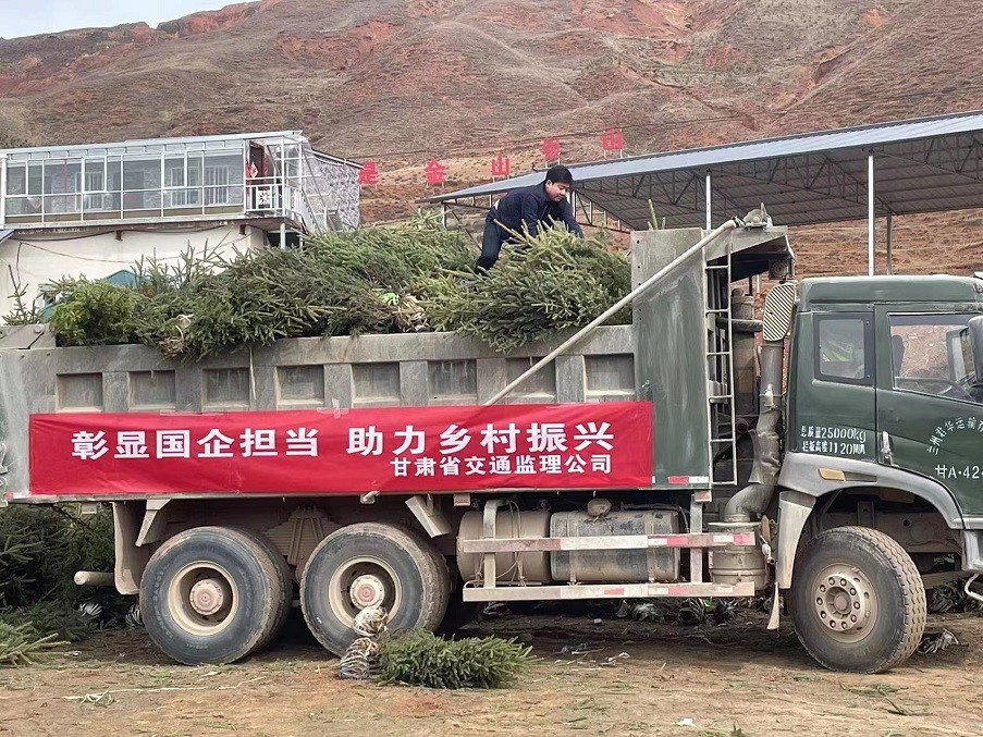 植樹現(xiàn)場,黨旗招展,有的揮鍬鏟土,有的扶樹填坑,有的澆水灌根,大家分工合作,默契配合,干勁十足,認真完成每一道工序。在大家的共同努力下,由交通監(jiān)理公司運送的800余棵云杉樹苗迎風挺立,為馬旦溝村再添一抹新綠。