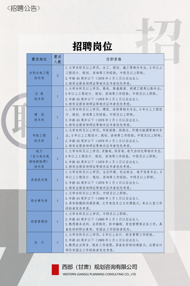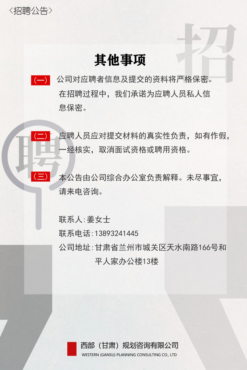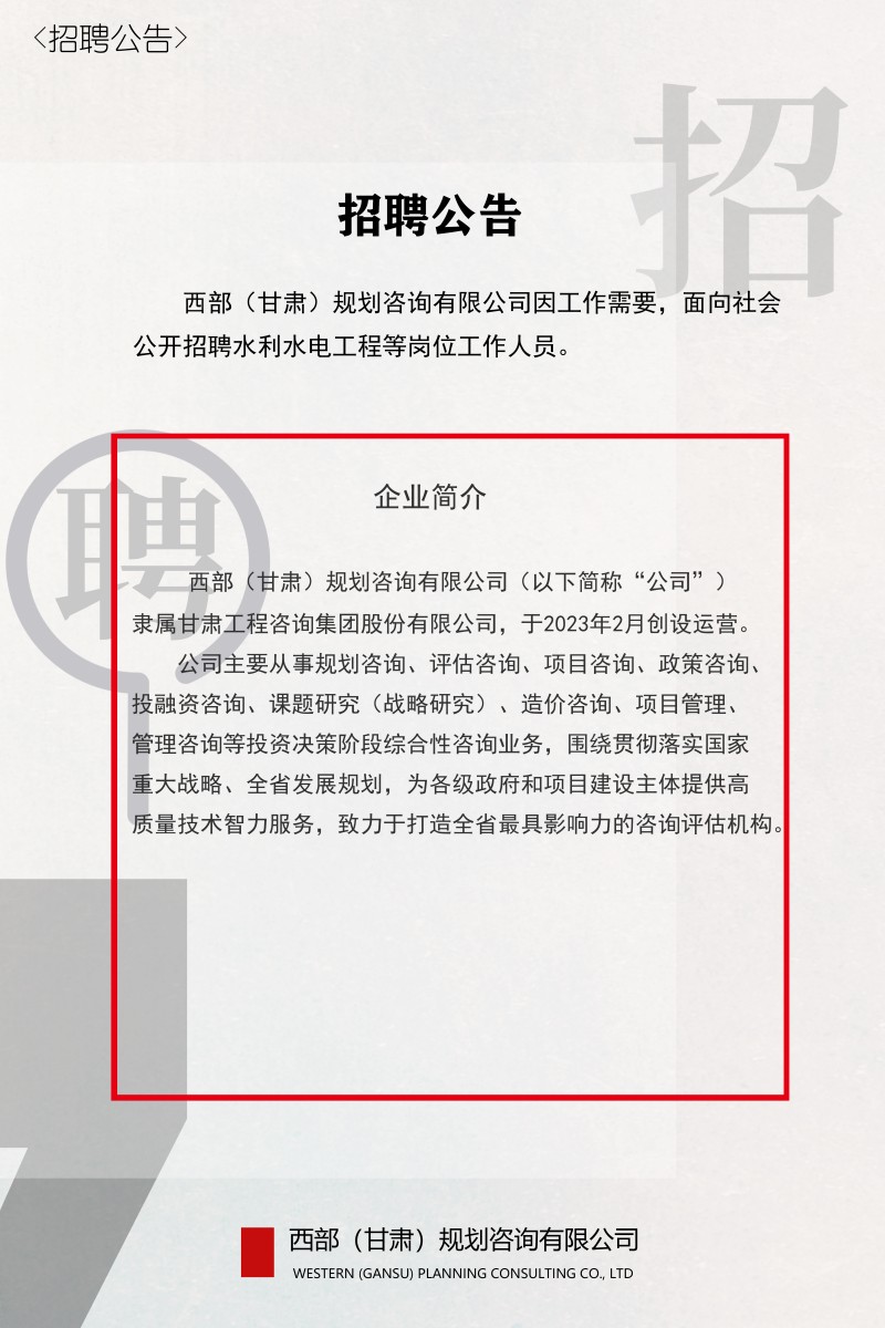 西部(甘肅)規劃咨詢有限公司2023年招聘公告