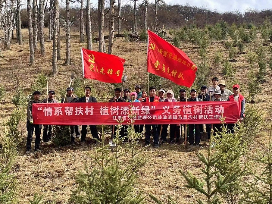 為積極響應(yīng)習(xí)近平總書記“全社會都做生態(tài)文明建設(shè)的實踐者、推動者,讓祖國天更藍(lán)、山更綠、水更清、生態(tài)環(huán)境更美好”的號召,以打造“五無甘南”,創(chuàng)建“十有家園”為目標(biāo),加快推進鄉(xiāng)村振興戰(zhàn)略實施,共建生態(tài)宜居宜業(yè)的美麗鄉(xiāng)村,近日,甘肅省交通工程建設(shè)監(jiān)理有限公司駐臨潭縣洮濱鎮(zhèn)馬旦溝村幫扶工作隊積極發(fā)揮自身職能,協(xié)同包村干部、村“兩委”成員、駐村黨員、義務(wù)志愿者及群眾代表等開展義務(wù)植樹活動。