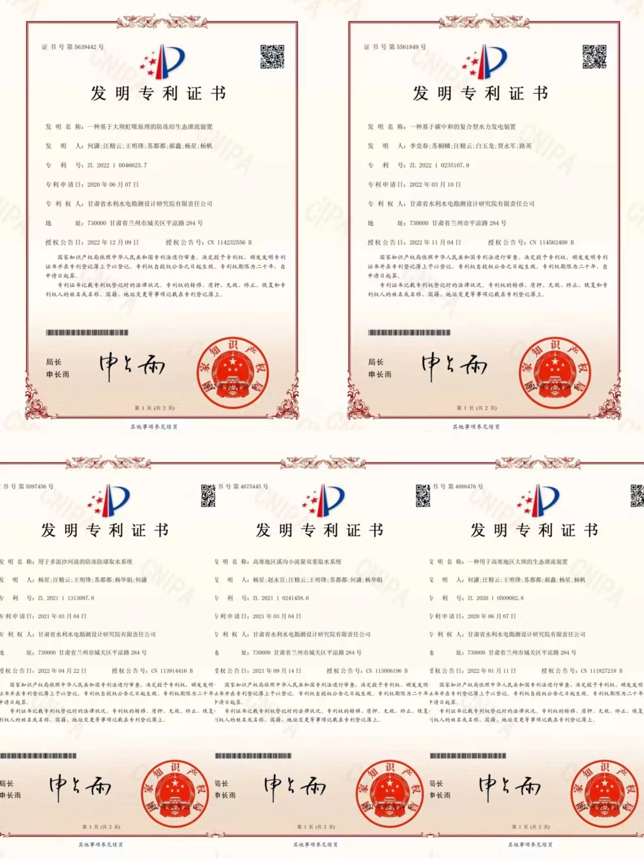 回望來路,科研創新碩果累累,攀升之階歷歷在目。取得發明專利5項,獲實用新型專利45項,軟著權43項。發表核心及以上期刊論文104篇,發表SCI、國家核心期刊及其它論文共171篇,獲省優秀工程勘察設計獎5項,省科技進步三等獎2項、省測繪地理信息學會優秀工程獎銀獎1項。10個科研項目被納入省水利廳科研計劃。全國優秀工程咨詢成果獎2項、全國水利勘察設計金獎1項、中國水保學會優秀設計二等獎1項。參編省級標準《甘肅省淤地壩工程初步設計報告審查要點》和《甘肅省淤地壩工程初步設計報告大綱》2部、中國水利學會團體標準《調流調壓閥技術導則》1部。