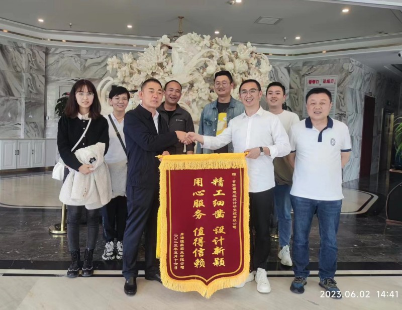 6月2日,青海恒鼎實(shí)業(yè)有限公司董事長(zhǎng)馬喜軍將一面繡著“精工細(xì)鑿、設(shè)計(jì)新穎、用心服務(wù)、值得信賴”的錦旗送到省建筑設(shè)計(jì)院青海分院,對(duì)其恒鼎金城項(xiàng)目中省建筑設(shè)計(jì)院提供的優(yōu)質(zhì)設(shè)計(jì)方案和高超技術(shù)質(zhì)量表示感謝,這也是省建筑設(shè)計(jì)院近期連續(xù)收到的第二面錦旗。