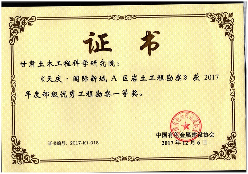 2017優(yōu)秀工程勘察一等獎