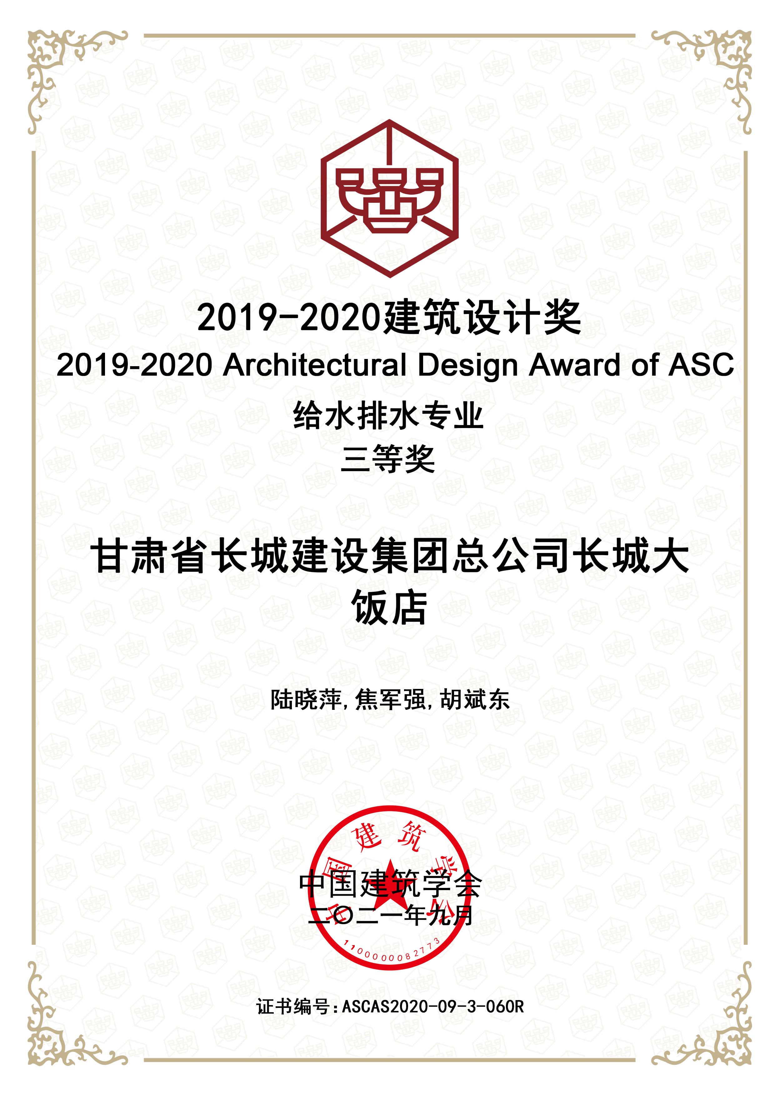 2019—2020建筑設計獎給排水專業三等獎
